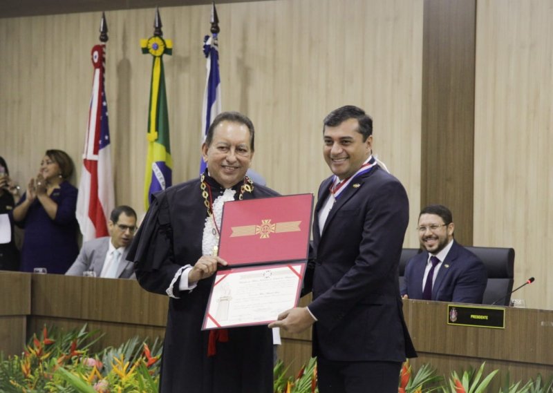 O diretor-presidente da Imprensa Oficial do Estado do Amazonas (IOA), Mário Jumbo Miranda Aufiero, participou da Sessão Solene de Outorga da Medalha e do Diploma da Ordem do Mérito Judiciário ao governador Wilson Lima, entre as 18 personalidades que se destacaram-no exercício de seus deveres.